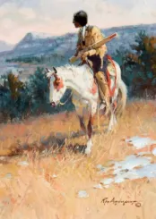 2023 - AUGUST, LOT 292Roy AndersenThe Pipe BearerOil on canvas9 x 12 inchesSold for $4,680.00Including Buyers Premium