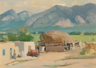Oscar Edmund Berninghaus (1874–1952) was a founding member of the Taos Society of Artists and a pioneer in capturing the essence of the American Southwest. From his early printmaking studies in St. Louis to his summers painting in Taos, Berninghaus developed a distinctive style that celebrated light, color, and the region’s people and landscapes.
