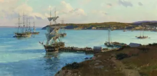 2025 - APRIL, LOT 420Christopher BlossomBrig Belfast at Clark’s PointOil on canvas20 x 40 inchesSold for $29,250.00Including Buyers Premium