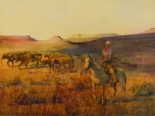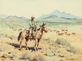 2025 - APRIL, LOT 319Edward BoreinCattle DriveWatercolor15 x 20 inchesSold for $35,100.00Including Buyers Premium