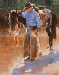 2025 - AUGUST | LIVE ONLINE, LOT 309Tom DorrUntitled (Cowboy and horses)Oil on canvas24 x 36 inchesSold for $2,632.50Including Buyers Premium