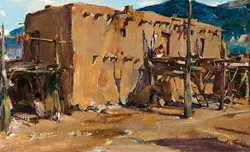 2019, LOT 223Nicolai FechinTaos Pueblo HouseOil on canvas19 x 31 inchesESTIMATE: $ 200,000 - $ 300,000