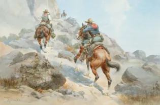 2020, LOT 340Herman HansenApache Scouts TrailingWatercolor20 x 30 inchesAvailable for: $ 16,800.00Including Buyers Premium