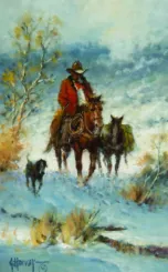 2022, LOT 136G. HarveyHolding the MountOil on canvas20 x 24 inchesSold for $70,200.00Including Buyers Premium