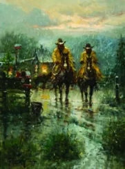 2025 - APRIL, LOT 138G. HarveyNight RidersOil on canvas16 x 20 inchesSold for $40,950.00Including Buyers Premium
