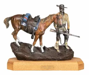 2024 - AUGUST, LOT 183Earle HeikkaThe Range RiderBronze, cast 2/3614 inches overall heightSold for $1,170.00Including Buyers Premium