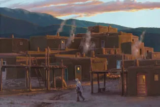 2024 - AUGUST, LOT 32Bill HughesAdobes at NightOil on canvas34 x 50 inchesSold for $1,287.00Including Buyers Premium