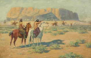 2025 - AUGUST | LIVE ONLINE, LOT 153Joseph ImhofAttack on the Wagon TrainOil on canvas25 1/2 x 38 1/2 inchesSold for $5,557.50Including Buyers Premium