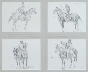 2023 - AUGUST, LOT 020Ned JacobFour Horses and Indians sketchesPencil on paperEach approximately 8 x 10 1/2 inchesSold for $702.00Including Buyers Premium