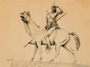 2022, LOT 205William R. LeighIndian on Horseback Looking OutPencil12 x 15 1/2 inchesSold for $3,802.50Including Buyers Premium