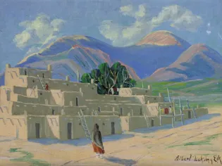 2023 - AUGUST, LOT 125Albert Looking ElkPuebloOil on board9 x 12 inchesSold for $3,802.50Including Buyers Premium