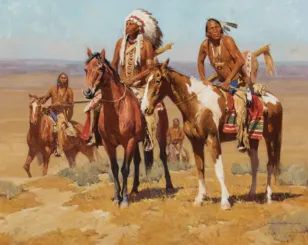 2025 - AUGUST | LIVE ONLINE, LOT 152David MannTwo Indians on HorsebackOil on canvas30 x 40 inchesSold for $4,095.00Including Buyers Premium