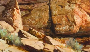2024 - APRIL, LOT 405Buck McCainFireside PetroglyphsOil on board20 x 16 inchesSold for $17,550.00Including Buyers Premium