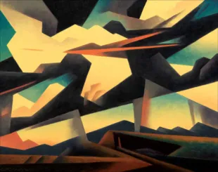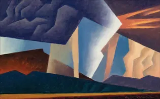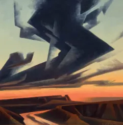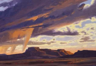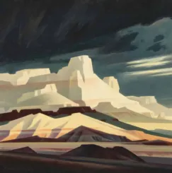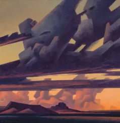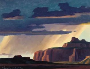 Ed Mell (1942–2024) was a Phoenix-born painter whose career spanned more than fifty years. Deeply inspired by the landscapes of the American Southwest, from the Grand Canyon to Monument Valley, Mell developed a signature style marked by angularity, monumental valley cloudscapes, and a vibrant yet controlled palette.