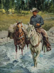 2024 - AUGUST, LOT 88Newman MyrahWorkin’ A RoundupOil on canvas24 x 30 inchesSold for $5,265.00Including Buyers Premium