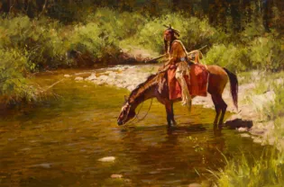 2020, LOT 301Jim NortonGuardian of the SpringsOil on board18 x 24 inchesSold for $ 5,265.00Including Buyers Premium