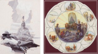 2025 AUGUST | LIVE ONLINE, LOT 014J.K. RalstonSet of two: A Cowboy’s Dream; Congregational ChurchOil on board; Oil on canvas (cut)Set of two(2): 11 x 8 1/4 inches; 13 1/2 diameterSold for $468.00Including Buyers Premium