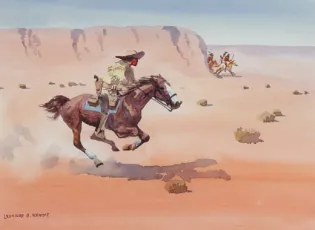 2023 - AUGUST, LOT 153Leonard Howard ReedyAttack on the Pony ExpressWatercolor8 x 11 inchesSold for $1,053.00Including Buyers Premium