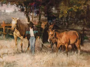 2023 - AUGUST, LOT 173Howard RogersBringing Dyna HomeOil on canvas20 x 30 inchesSold for $3,217.50Including Buyers Premium