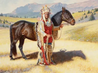 2023 - AUGUST, LOT 283Tom SaubertWhite Quiver – Blackfeet Horse RaiderOil on board30 x 40 inchesSold for $1,872.00Including Buyers Premium