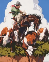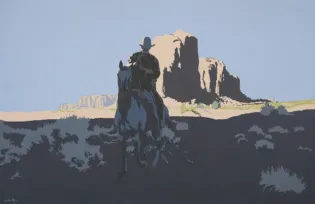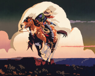 2025 - AUGUST | LIVE ONLINE, LOT 227Billy SchenckUntitled (Cowboy on horseback)Oil on linen41 x 62 1/2 inchesSold for $10,530.00Including Buyers Premium