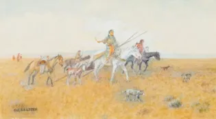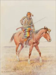 Olaf C. Seltzer (1877–1957) was a Danish-born American artist celebrated for chronicling the American West. After moving to Great Falls, Montana, he became a protégé of Charles M. Russell and developed a prolific career spanning more than 2,500 paintings and illustrations. His work captures cowboys, pioneers, wildlife, and historical figures with precision, energy, and a distinctive personal style that blends documentary detail with artistic interpretation.