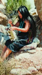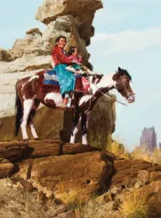 Ray Swanson’s art is celebrated for its sensitive and realistic depictions of Native American life, from ceremonial dress to daily activities, along with the vivid landscapes of the Southwest.