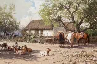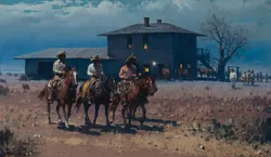 Collectors prize Warren’s paintings for their historical accuracy, warm palette, and narrative depth. His works capture the authenticity of frontier life, from cowboys on the trail to the expansive landscapes of the Southwest, combining technical mastery with a keen sense of storytelling.
