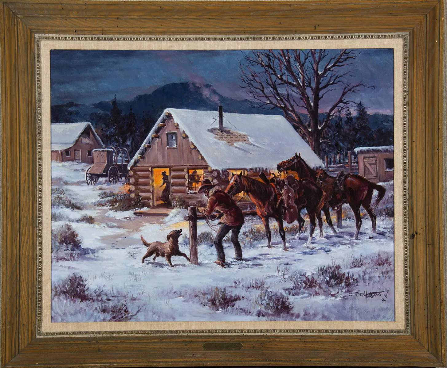 Please note that the first unframed photo is most accurate for color. Framed photographs are to show the frame and are not color corrected to the painting. *The Condition Reports are for guidance only and should not be relied upon as statements of fact, and do not constitute a representation, warranty, or assumption of liability by Scottsdale Art Auction. Scottsdale Art Auction strongly encourages in-person inspection of items by the bidder. All lots offered are sold “AS IS”. Please refer to item two in our terms and conditions for further information.