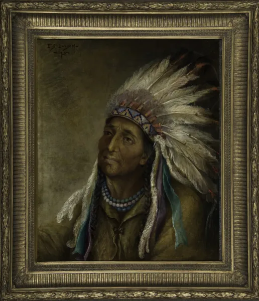 Born before Frederic Remington and Charlie Russell, who was a close friend, Edgar S. Paxson had a front-row view of history during the final days of the Wild West. The New York-based artist was encouraged to go West by James Fenimore Cooper novels. After heading to the Montana Territory in 1877, the artist spent time as a cowboy, hunter, stagecoach guard, military scout and a sign painter before becoming an artist. He would go on to paint many historic scenes, although his Native American portraits are highly desirable.