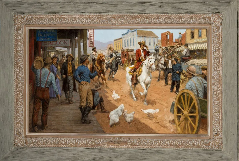 Mark Twain took his name in Virginia City, Nevada when he was a young journalist in that wide open town. His brother worked for the territorial government, and it was he who told Samuel Clemens-who was not yet Mark Twain-about the opportunity. It is said that Clemens, now Twain, was challenged to duel four times because of his caustic wit and penchant for truth telling. His nom de plume must not have worked too well, or is it that he had the audacity of youth on his side, as Andy Thomas suggests here? No matter, Mark Twain, who would author Adventures of Huckleberry Finn and many other classics of American fiction, would soon attain worldwide fame, while Samuel Clemens would become nothing more than the name he was born with.