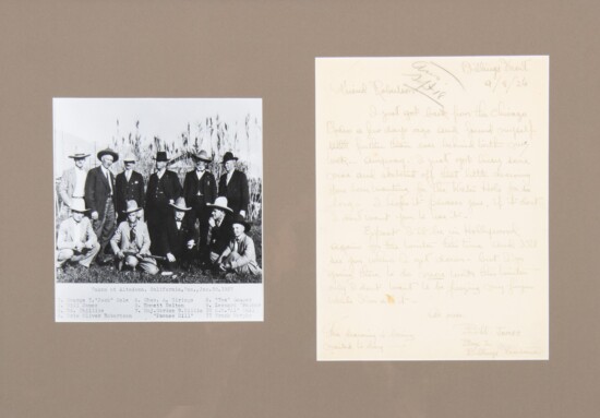 *Photograph in Alta Dena, CA, Sunday, Jan 30th, 1927 & original graphite Will James letter to Orie Oliver Robertson 1926 to accompany this lot.