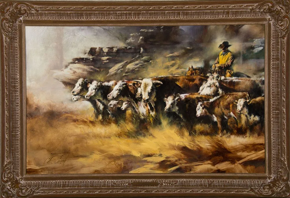 Please note that the first unframed photo is most accurate for color. Framed photographs are to show the frame and are not color corrected to the painting. *The Condition Reports are for guidance only and should not be relied upon as statements of fact, and do not constitute a representation, warranty, or assumption of liability by Scottsdale Art Auction. Scottsdale Art Auction strongly encourages in-person inspection of items by the bidder. All lots offered are sold “AS IS”. Please refer to item two in our terms and conditions for further information.