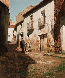 Clark Hulings grew up in New Jersey, studied in New York under Frank Reilly at the Art Student’s League, and haunted the Grand Central Art Galleries. Golden Age illustrators like Rockwell and Cornwell offered a constant wellspring of inspiration and insight into technique, but the time he spent in Spain as a little boy after the death of his mother made a deep impression on his imagination and the old streets, donkeys and carts, stalls and markets in Mexico, Italy, Spain and elsewhere became his principal subjects.