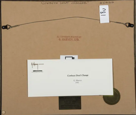 These pieces are surely an important part of Western Art history and some even date back nearly forty years. We are quite proud to offer this important collection of G. Harvey drawings and studies for the first time. Every one of these works of art comes with an attached letter of authenticity from the estate, including what completed painting each piece was a study or a sketch for.