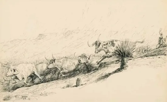 "Curly Bill (Brocious) and his buccaneers, stealing across the border, rounded up cattle from plains and foothills and brought them back in rushing stampeeds, sometimes a thousand head at a single eagle swoop"