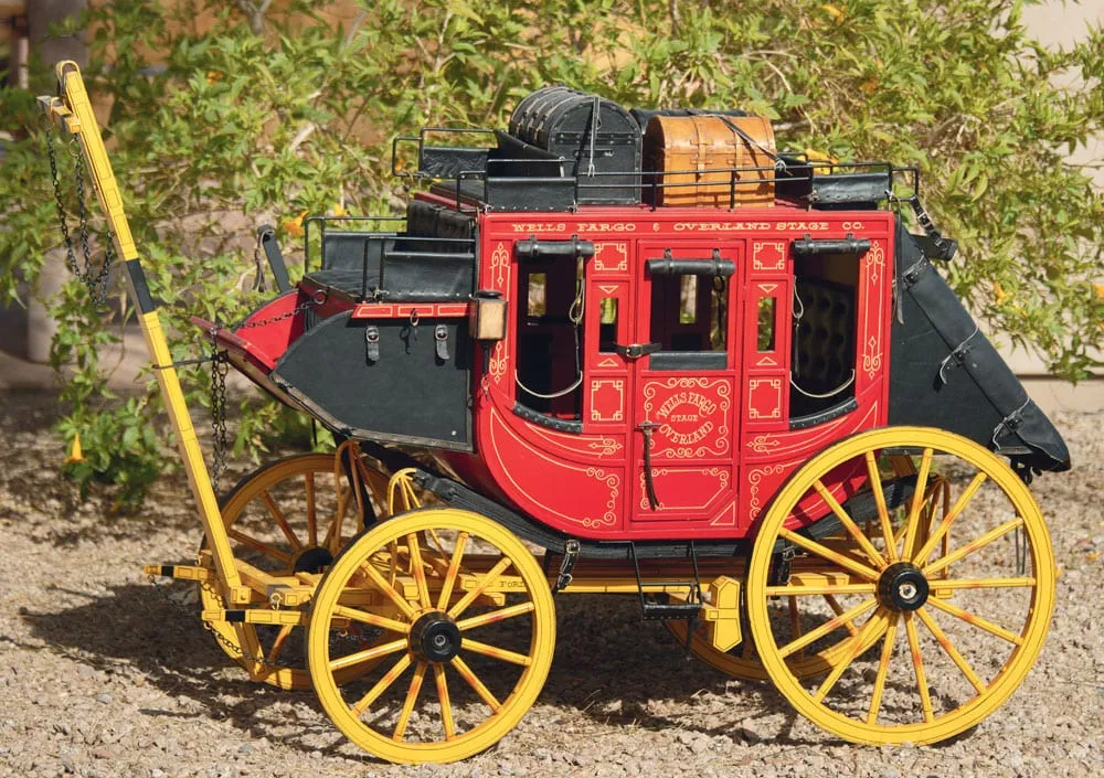 A full-time artist for over 40 years, Dale Ford specialized in scale model horse drawn wagons and stagecoaches. Made by hand of hand-rubbed hardwood, steel and leather, each component of his unique pieces is separately painted and detailed. The result of a combination of thorough research and artistry, Ford’s conveyances of the Old West offer a fascinating glimpse into a colorful aspect of a bygone era.