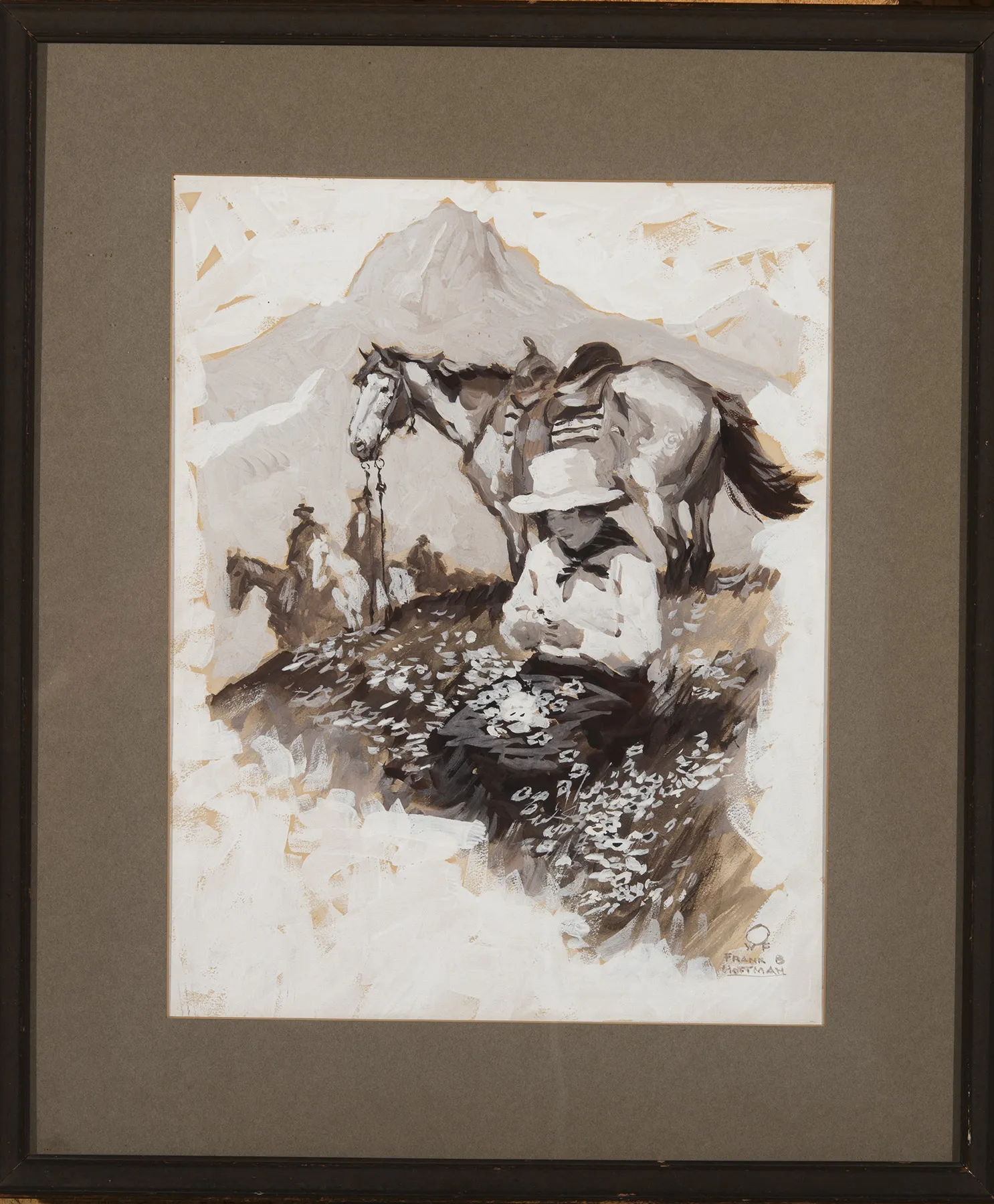Please note that the first unframed photo is most accurate for color. Framed photographs are to show the frame and are not color corrected to the painting. *The Condition Reports are for guidance only and should not be relied upon as statements of fact, and do not constitute a representation, warranty, or assumption of liability by Scottsdale Art Auction. Scottsdale Art Auction strongly encourages in-person inspection of items by the bidder. All lots offered are sold “AS IS”. Please refer to item two in our terms and conditions for further information.