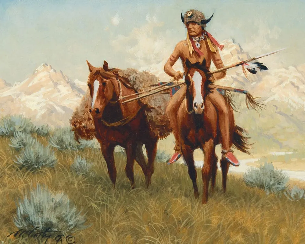 Frank McCarthy started out working elbow to elbow with the great painters of illustration’s Golden Age. They labored and brawled together in the 50’s and 60’s, living the life in what was called “The Bullpen,” a building in Midtown Manhattan that was, in reality, a hive of artists who lived from assignment to assignment as the “Mad Men” dreamed up campaigns for pulp novels, cigarettes, lingerie, and Oldsmobiles. McCarthy illustrated books and magazine stories and did posters for Hollywood—James Bond films in particular. In 1974, McCarthy left art-for-hire and moved to Arizona, where he would paint some of the most distinctive action scenes that ever leapt out of the pages of “The Old West”.