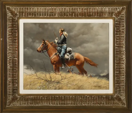Please note that the first unframed photo is most accurate for color. Framed photographs are to show the frame and are not color corrected to the painting. *The Condition Reports are for guidance only and should not be relied upon as statements of fact, and do not constitute a representation, warranty, or assumption of liability by Scottsdale Art Auction. Scottsdale Art Auction strongly encourages in-person inspection of items by the bidder. All lots offered are sold “AS IS”. Please refer to item two in our terms and conditions for further information.