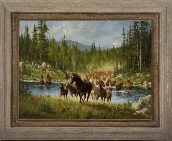 Please note that the first unframed photo is most accurate for color. Framed photographs are to show the frame and are not color corrected to the painting. *The Condition Reports are for guidance only and should not be relied upon as statements of fact, and do not constitute a representation, warranty, or assumption of liability by Scottsdale Art Auction. Scottsdale Art Auction strongly encourages in-person inspection of items by the bidder. All lots offered are sold “AS IS”. Please refer to item two in our terms and conditions for further information.