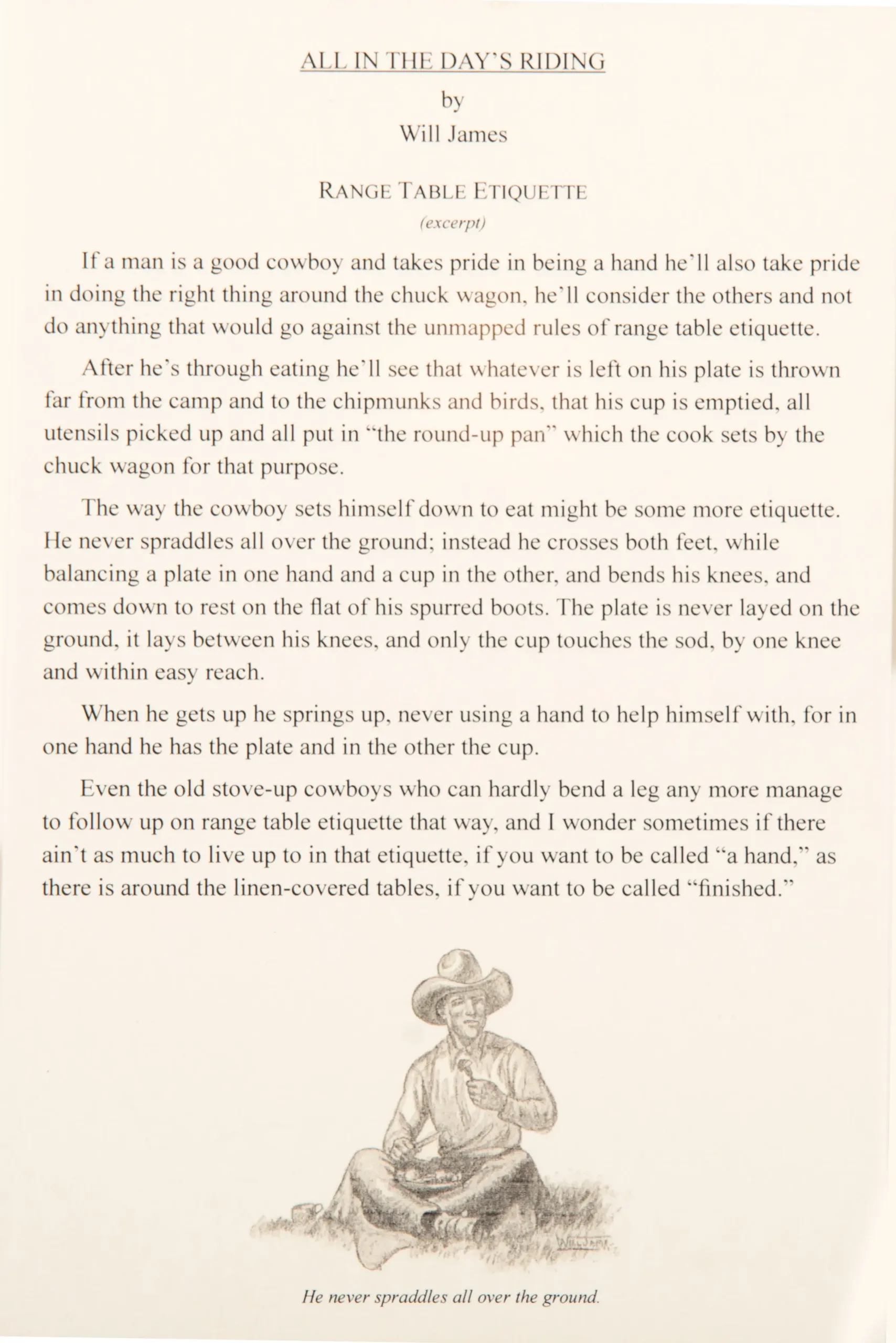 *A framed reproducton of "Range Table Etiquette" from pg. 39 & 40 in All In The Day's Riding book, to accompany this lot