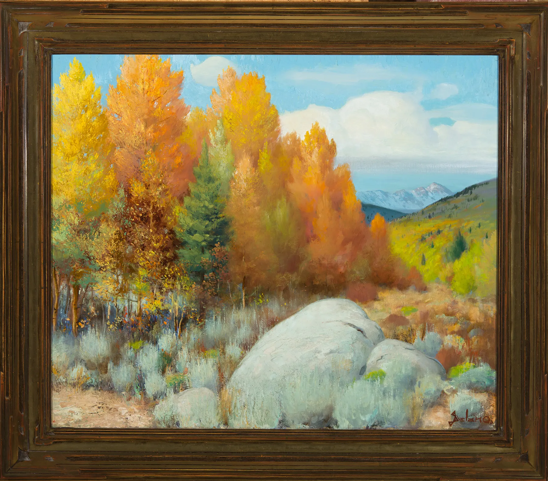 Please note that the first unframed photo is most accurate for color. Framed photographs are to show the frame and are not color corrected to the painting. *The Condition Reports are for guidance only and should not be relied upon as statements of fact, and do not constitute a representation, warranty, or assumption of liability by Scottsdale Art Auction. Scottsdale Art Auction strongly encourages in-person inspection of items by the bidder. All lots offered are sold “AS IS”. Please refer to item two in our terms and conditions for further information.