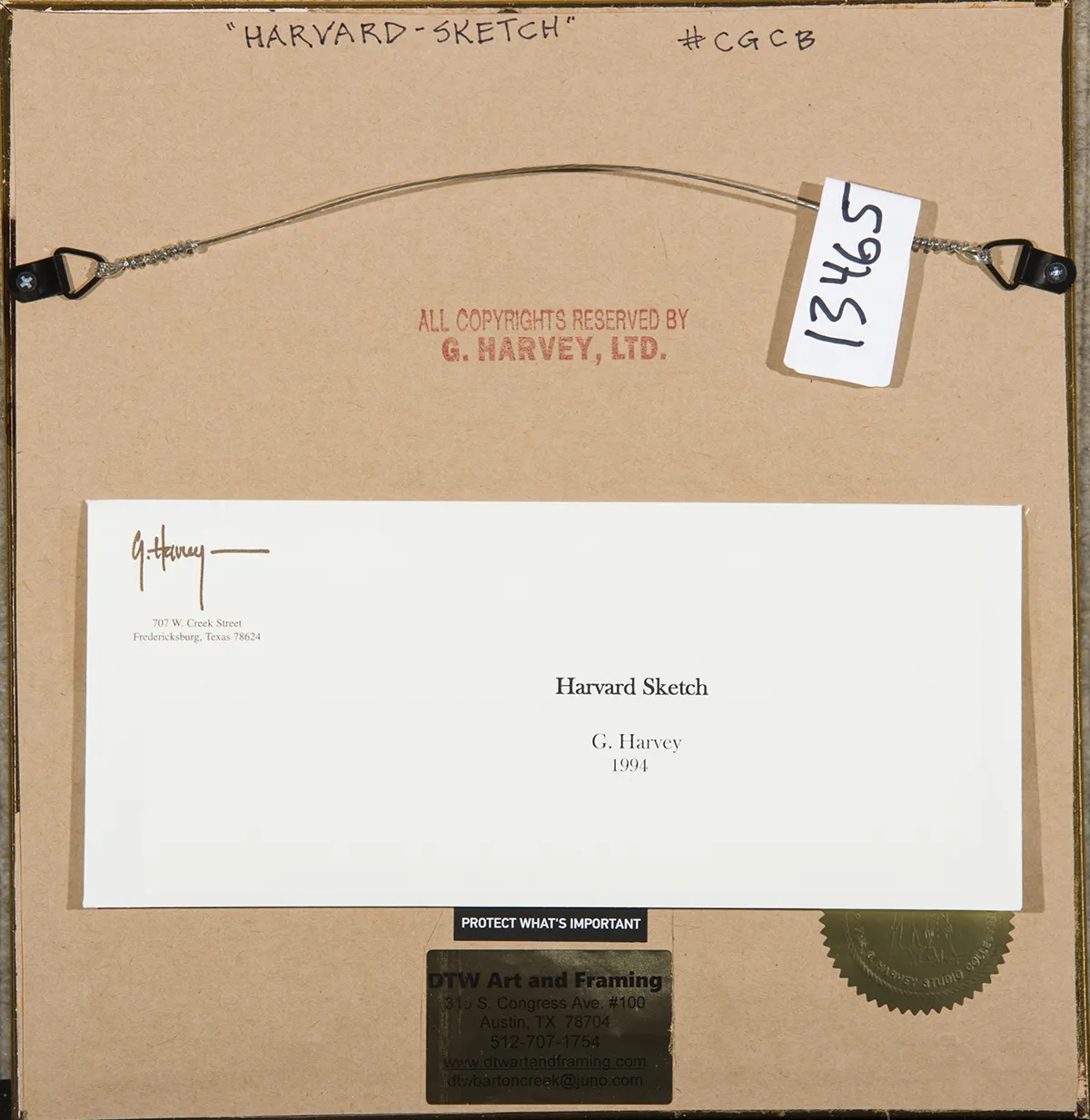 G. Harvey famously stated "My paintings have never been literal representations. They are part first-hand experience, and part dreams generated by those early stories I heard. They are a product of every place I have been, everything I have ever seen and heard." As Harvey believed his paintings represented personal connections to places and things, this exemplifies why his studies and drawings were so important to his creative process. According to Tim Taylor, Harvey’s son-in-law, every single painting he would do would have seven to ten iterations to it, from pen and ink to watercolor to quick oil sketch to final painting. It is in these studies where Harvey sets in place his emotion connections and feelings for his subject matter and it is in these studies where Harvey would figure out his compositional and color approaches for each work. In fact, one of the sketches consigned has a red dot in the image which represent the point of perspective he had determined for that particular work of art.