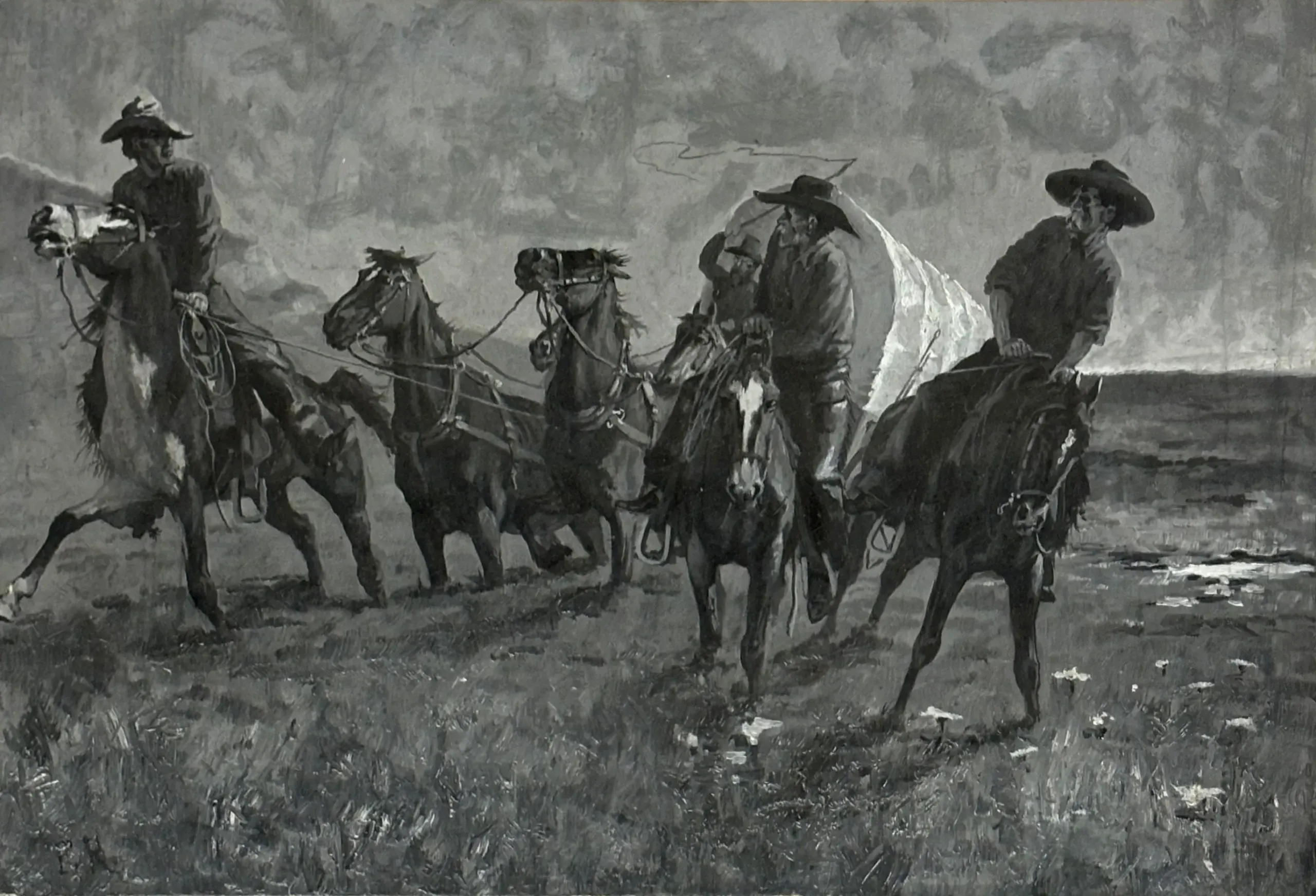 According to Thayer Tolles, curator of American Paintings and Sculpture at the Metropolitan Museum of Art, “Remington traveled frequently on sketching trips to the American West; his experiences with and observations of Native Americans, cavalrymen, scouts, and cowboys served as ongoing creative fodder for an endless stream of commissions for illustrations.”