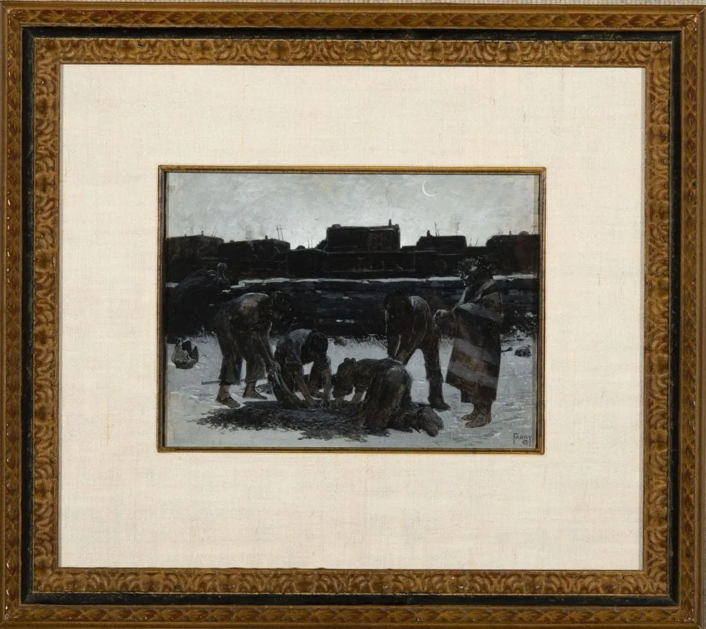 Please note that the first unframed photo is most accurate for color. Framed photographs are to show the frame and are not color corrected to the painting. *The Condition Reports are for guidance only and should not be relied upon as statements of fact, and do not constitute a representation, warranty, or assumption of liability by Scottsdale Art Auction. Scottsdale Art Auction strongly encourages in-person inspection of items by the bidder. All lots offered are sold “AS IS”. Please refer to item two in our terms and conditions for further information.