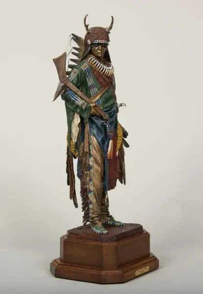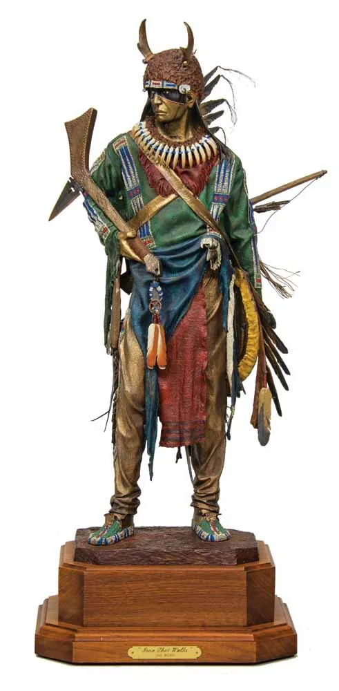 Part of Dave McGary’s famous Upper Missouri River series of bronzes, Iron That Walks is full of the little details that bring the sculptor’s works to life. From the individual beads in the shirt and bear claws in the necklace to the subtle imperfections on the feathers and the bladed edge on the war club. No detail is superfluous in a McGary bronze. “Like [Charles M.] Russell, he is an artist from outside the culture who has been accepted and