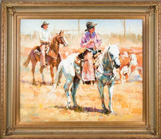 Please note that the first unframed photo is most accurate for color. Framed photographs are to show the frame and are not color corrected to the painting. *The Condition Reports are for guidance only and should not be relied upon as statements of fact, and do not constitute a representation, warranty, or assumption of liability by Scottsdale Art Auction. Scottsdale Art Auction strongly encourages in-person inspection of items by the bidder. All lots offered are sold “AS IS”. Please refer to item two in our terms and conditions for further information.