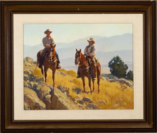 Please note that the first unframed photo is most accurate for color. Framed photographs are to show the frame and are not color corrected to the painting. *The Condition Reports are for guidance only and should not be relied upon as statements of fact, and do not constitute a representation, warranty, or assumption of liability by Scottsdale Art Auction. Scottsdale Art Auction strongly encourages in-person inspection of items by the bidder. All lots offered are sold “AS IS”. Please refer to item two in our terms and conditions for further information.