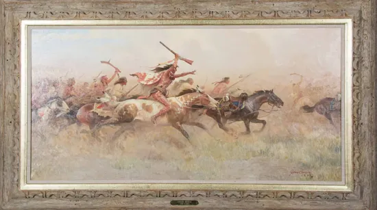 Please note that the first unframed photo is most accurate for color. Framed photographs are to show the frame and are not color corrected to the painting. *The Condition Reports are for guidance only and should not be relied upon as statements of fact, and do not constitute a representation, warranty, or assumption of liability by Scottsdale Art Auction. Scottsdale Art Auction strongly encourages in-person inspection of items by the bidder. All lots offered are sold “AS IS”. Please refer to item two in our terms and conditions for further information.
